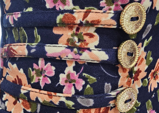 Falda blanco floreado Plizada 3/4 medio disco N/B