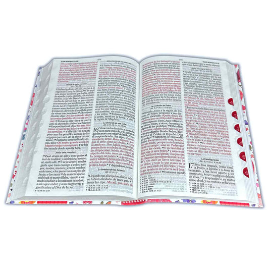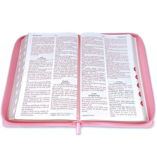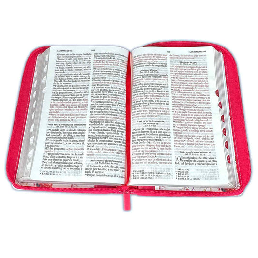 Bible with Large Print Closure 12 points RV1960 imitation. pink and white floral with index - Virtuosa Woman