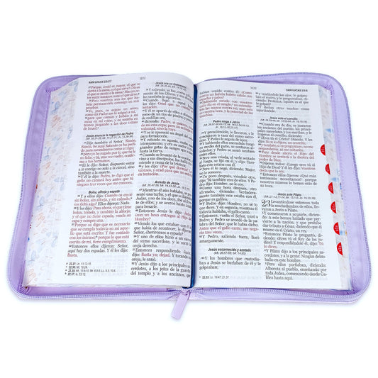 Bible with Large Print Closure 12 points RV1960 imitation. lilac floral with index and floral edge