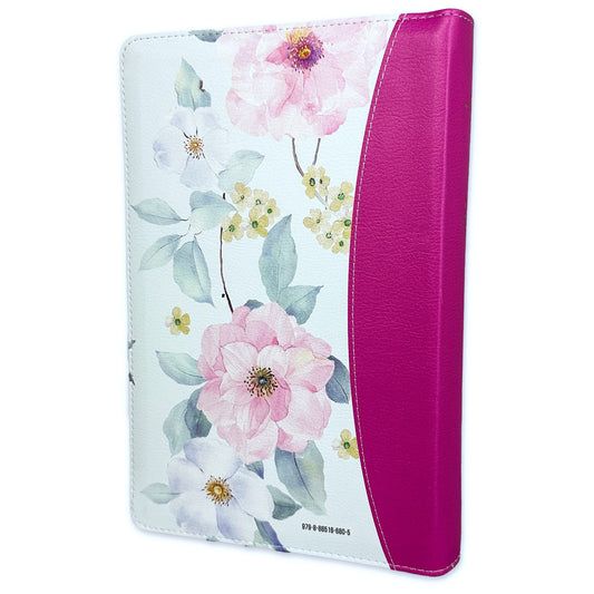 Bible with Closure Giant Letter Manual 14 points RV1960 imitation leather floral butterflies fuchsia and white floral with index