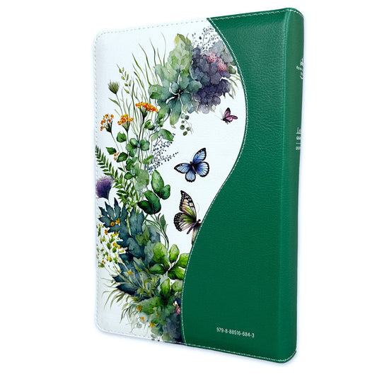 Bible with Manual Giant Letter Closure 14 points RV1960 imitation green butterfly floral leather with index and floral edge