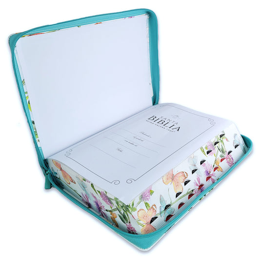 Bible with Zipper, Super Giant Print, 19-point, RV1960, imitation leather, duotone turquoise floral and butterfly, with index