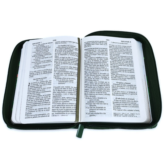 BIBLE RVR1960 FOUNTAIN OF BLESSINGS WITH ILLUSTRATIONS, IMITATION LEATHER FISH DESIGN, COMPACT SIZE WITH CLOSURE AND INDEX