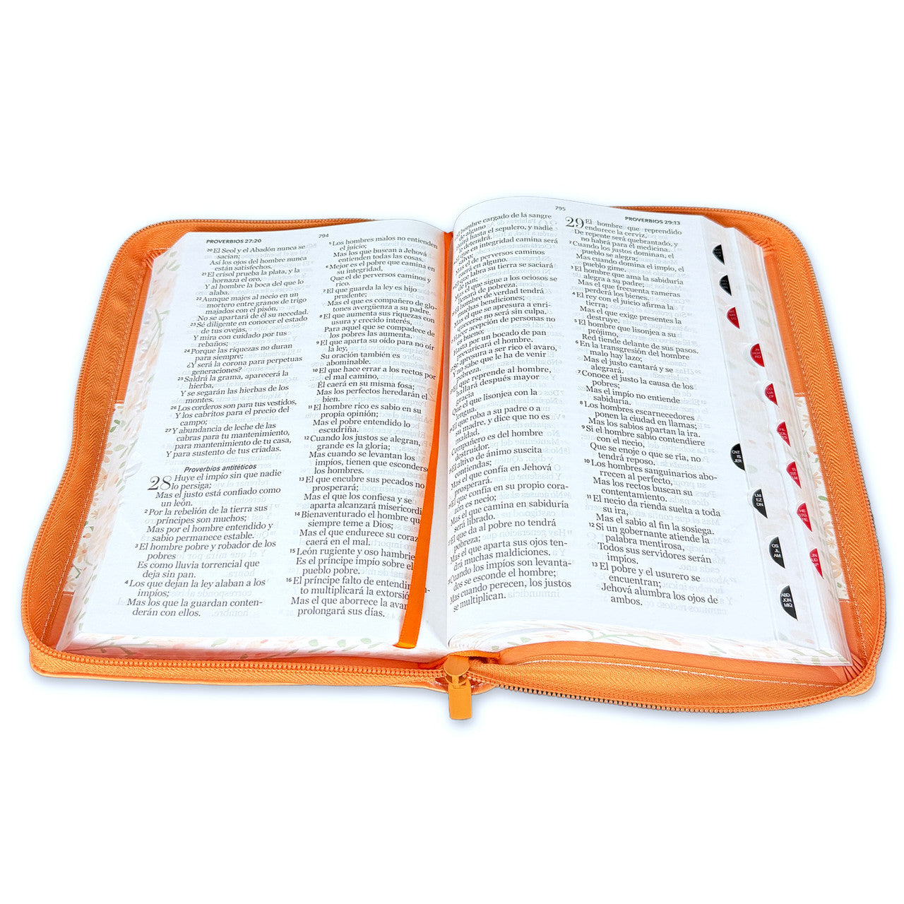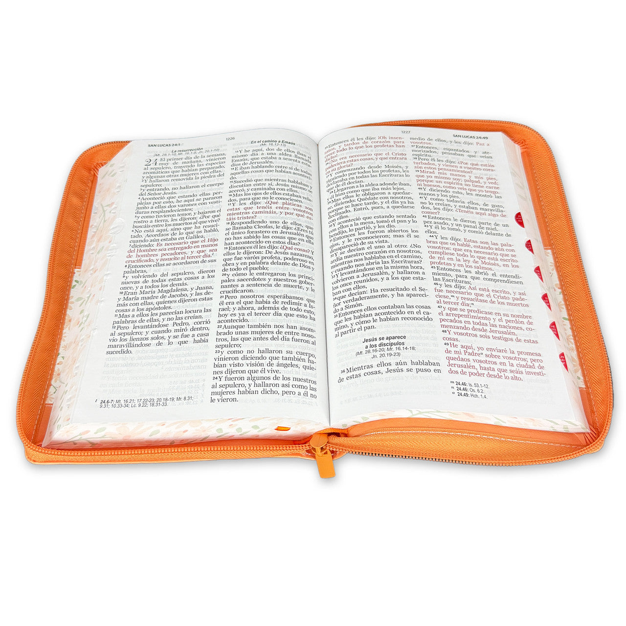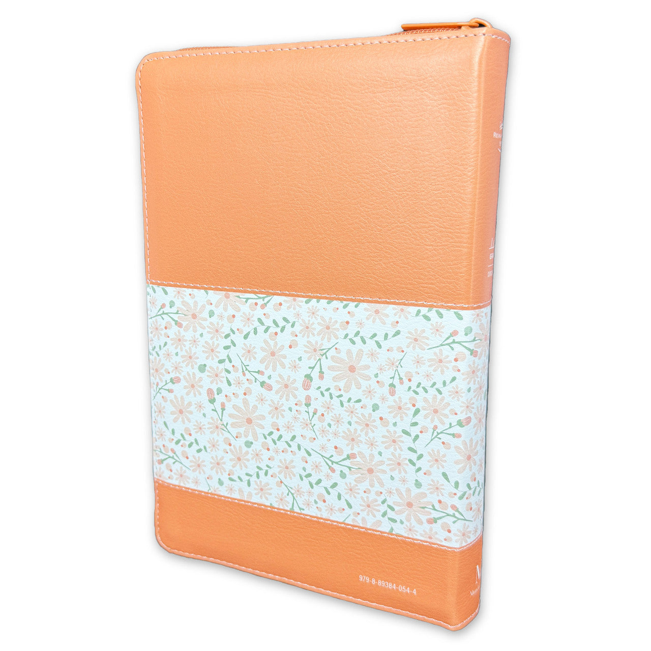 Large Print 12-point Zipper Bible for Women RV1960 imitation coral leather flowers with index and edge flora