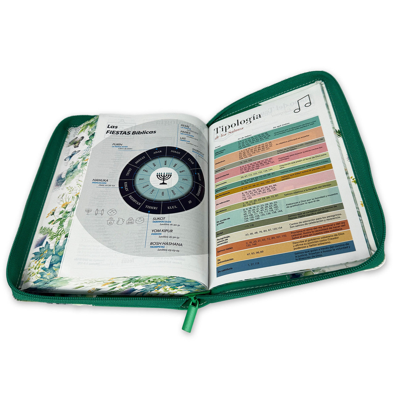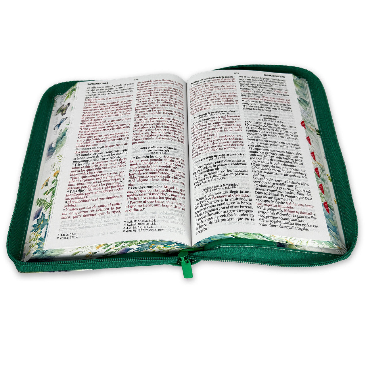 Large Print 12 point Zipper Bible RV1960 imitation leather floral butterfly green with index and floral edge