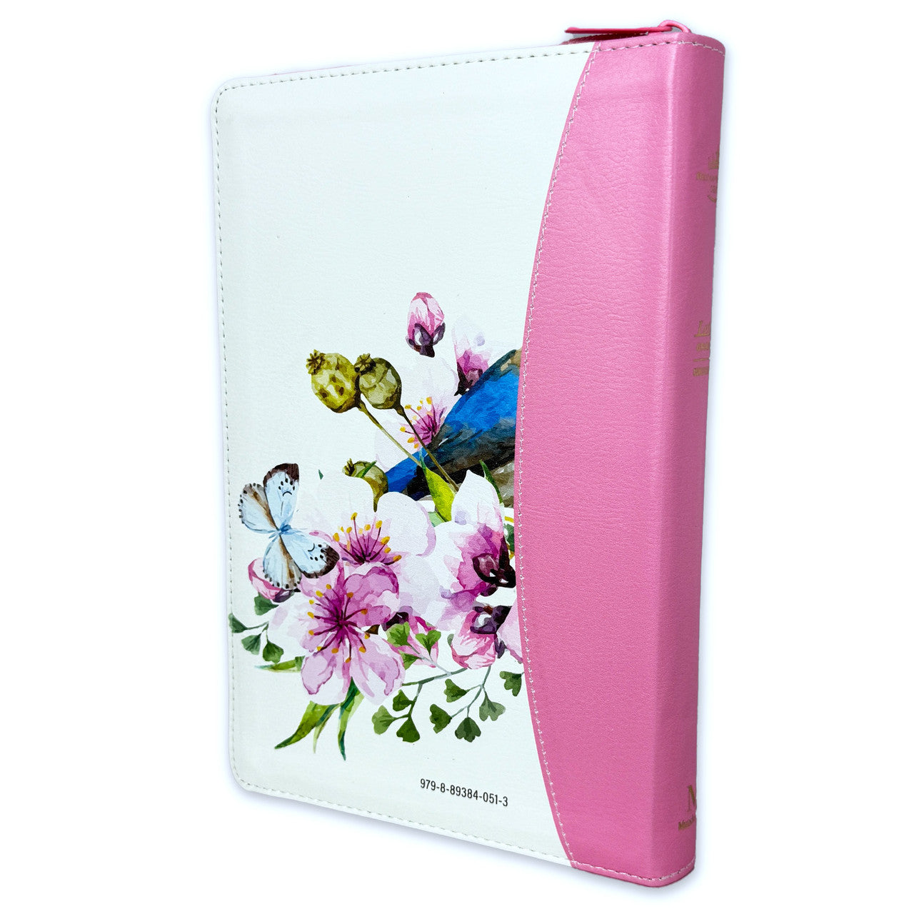 Large Print 12 point Zipper Bible RV1960 imitation pink leather bird floral with pink spring painted edge