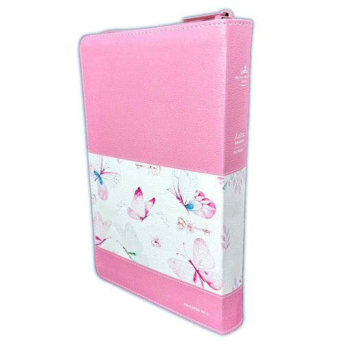 Bible with Large Print Closure 12 points RV1960 imitation. pink skin and butterflies with index