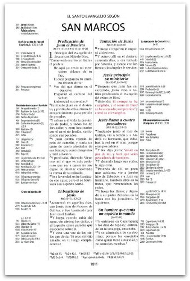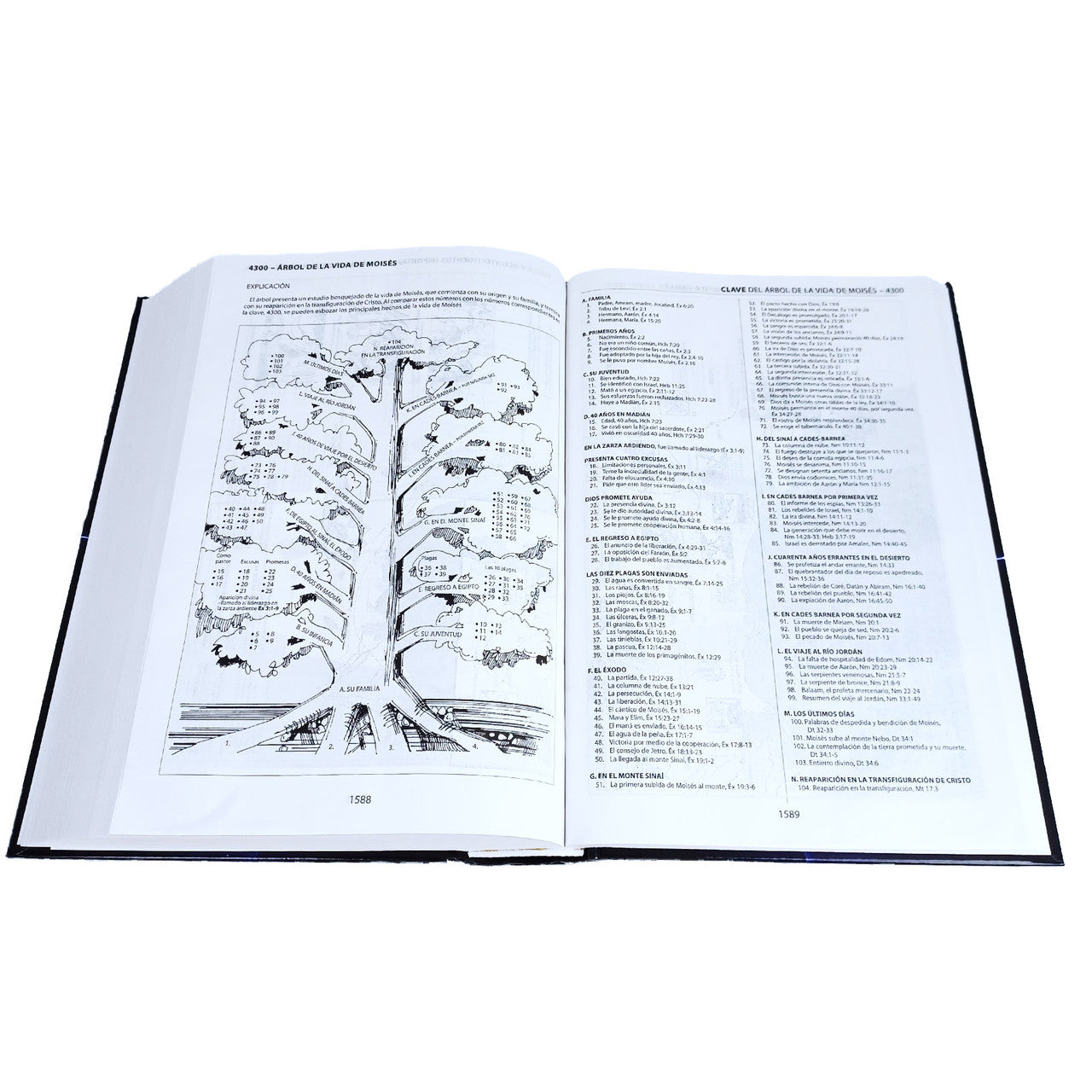 The Thompson Reference Bible, Reina-Valera 1960 version, is without a doubt the most complete Bible anywhere. It is practically a Bible reference library with more than 7,000 names, places, and topics and more than 100,000 references analyzed and classified according to concepts. The marginal helps are "chained" to eight sections at the end of the Bible, where the wealth of detail is superior to any other published Bible. It is designed to help the reader identify thousands of significant themes, concepts, ideas, and biblical characters, and research references to these themes throughout the entire Bible. It is a complete system, easy to understand and use. This is the ideal Bible for the pastor, the Sunday School teacher, the layperson, and the student.
