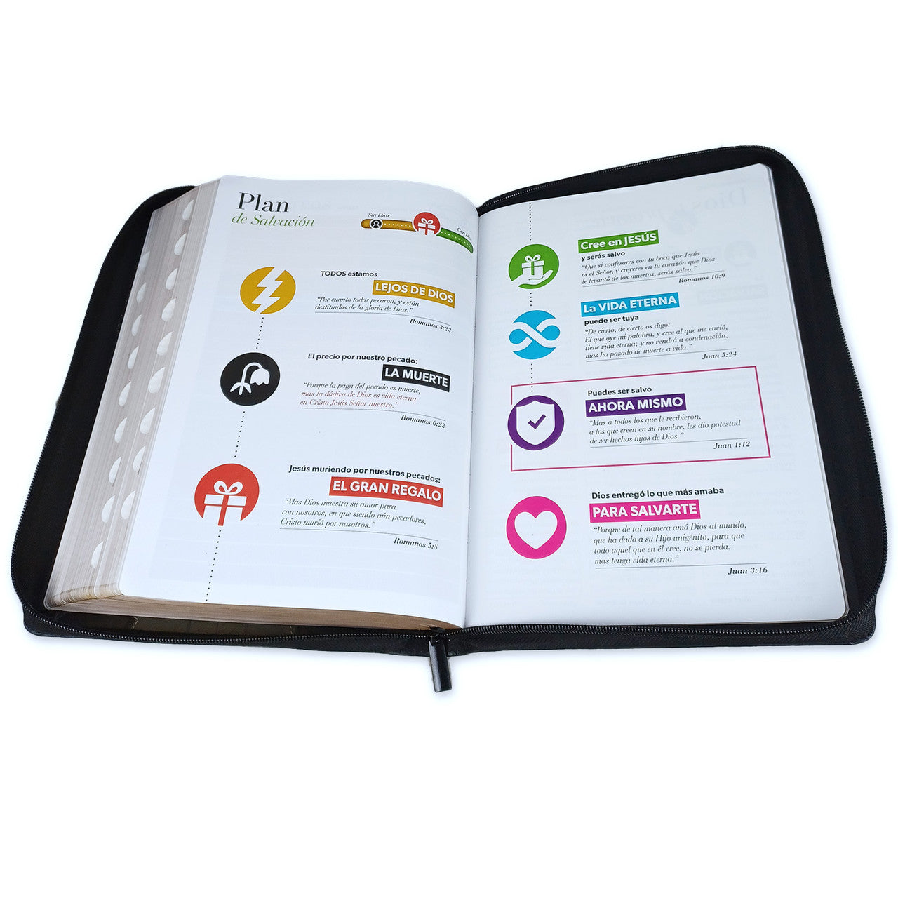The Reina-Valera 1960 translation is a formal equivalence, all without altering the basic meaning of the biblical message and also preserving the style and cadence of the Reina text. This is the version most widely accepted by all churches in Latin America and Spain. This Reina Valera 1960 Bible edition is ideal for those who want a Bible with legible 19-point type. It contains 32 full-color pages with reference materials.