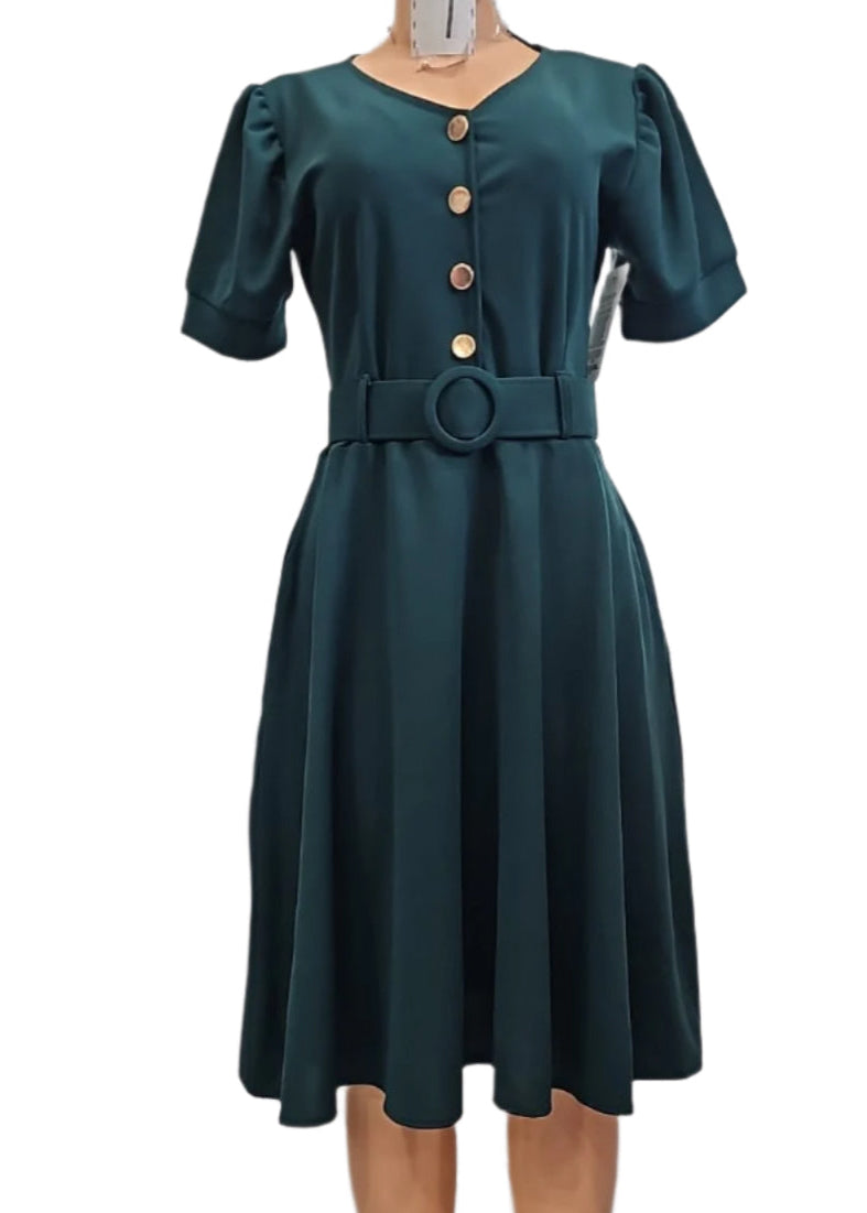 🔹 **Cinturón:** Forrado en la misma tela, con hebilla redonda que define la cintura