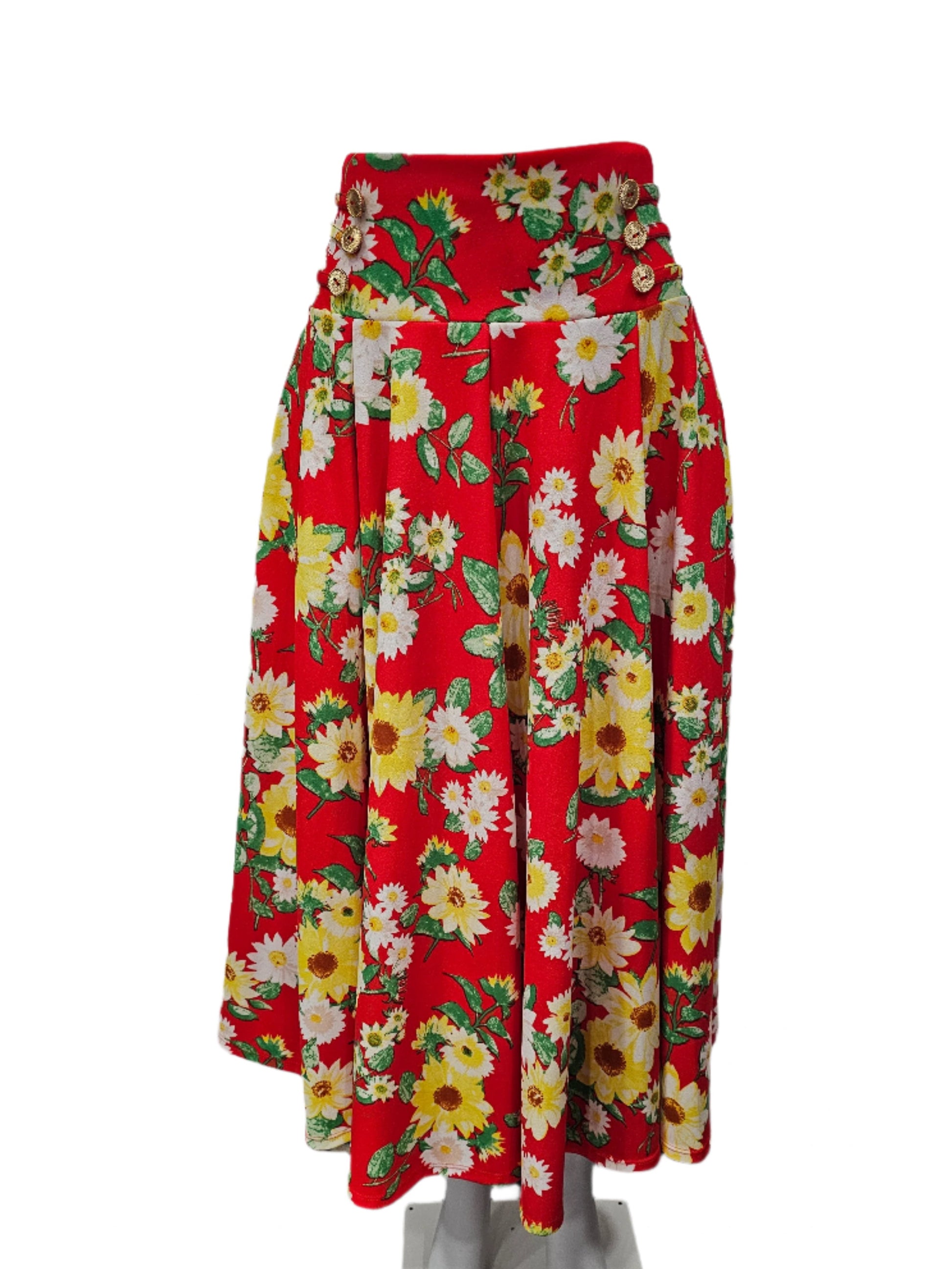 The buttoned skirt with floral lace is a feminine and versatile garment with practical pockets for your belongings. Its floral design and 3/4 length will allow you to look elegant and comfortable on any occasion. Add a touch of color and style to your wardrobe with this beautiful skirt.
