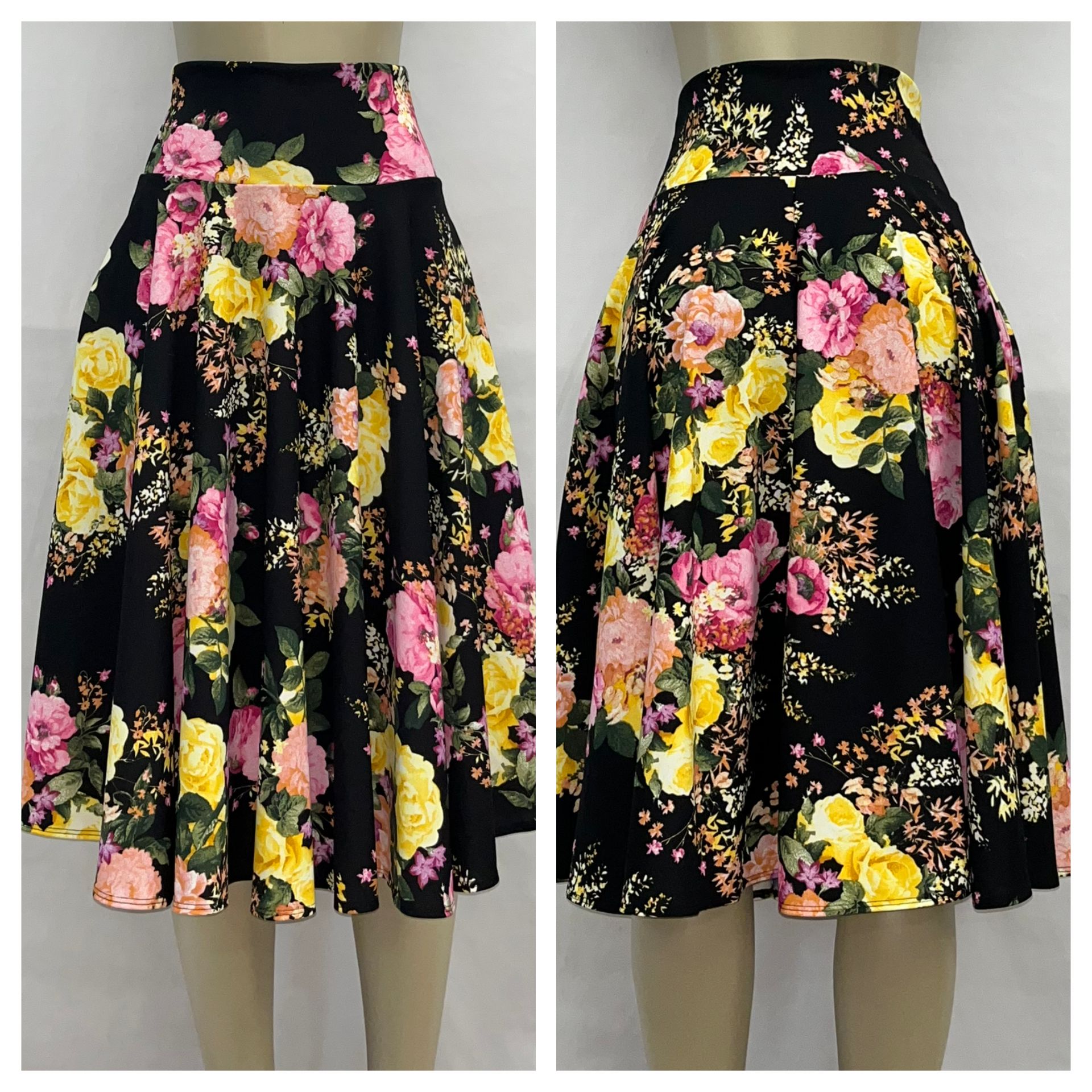 🌸 Estilo: Falda midi con vuelo y caída natural