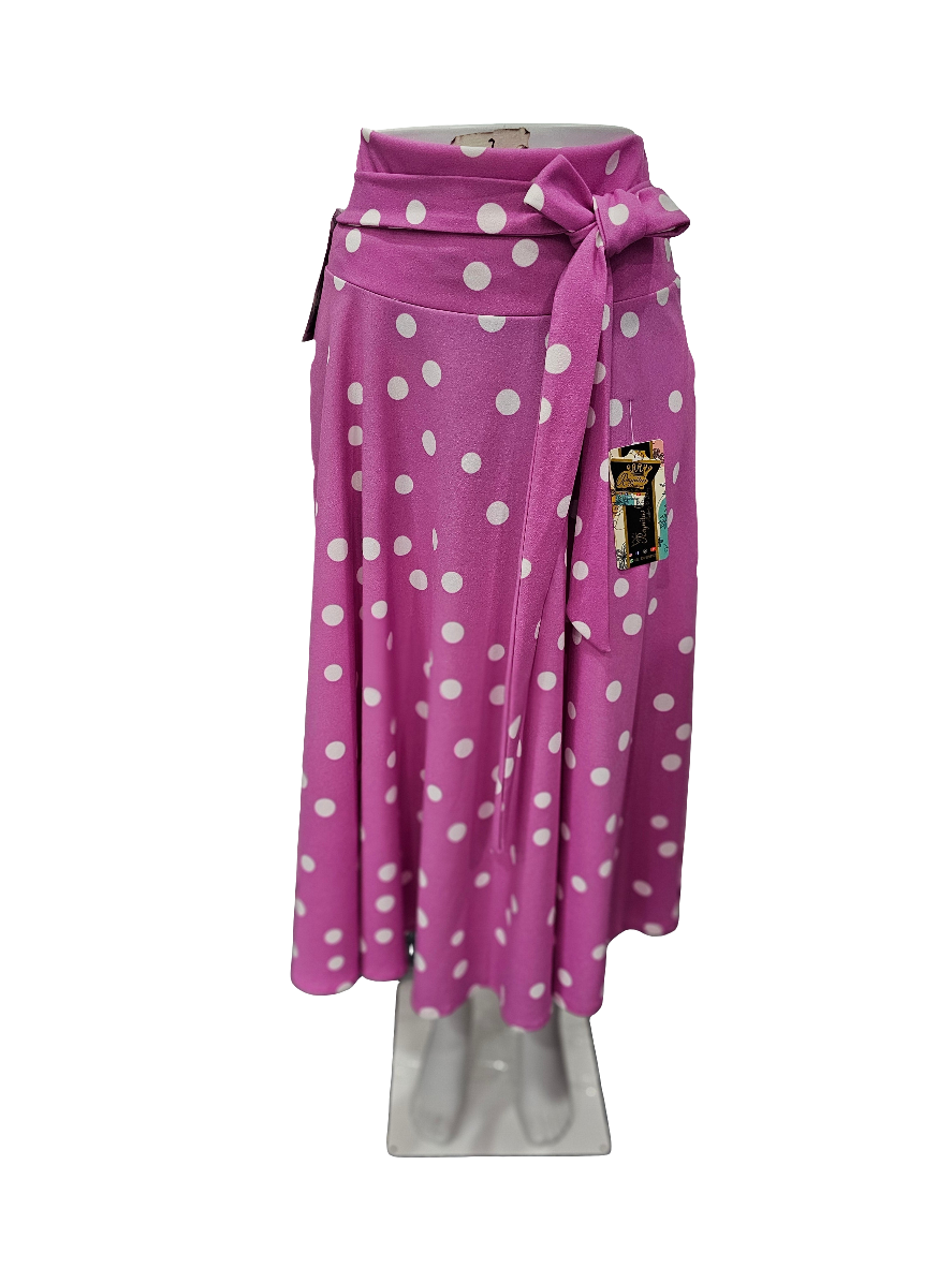 Add a fun touch to your wardrobe with this skirt! Featuring polka dots and a ribbon, this skirt comes with pockets for added convenience. Perfect for a casual and feminine look.