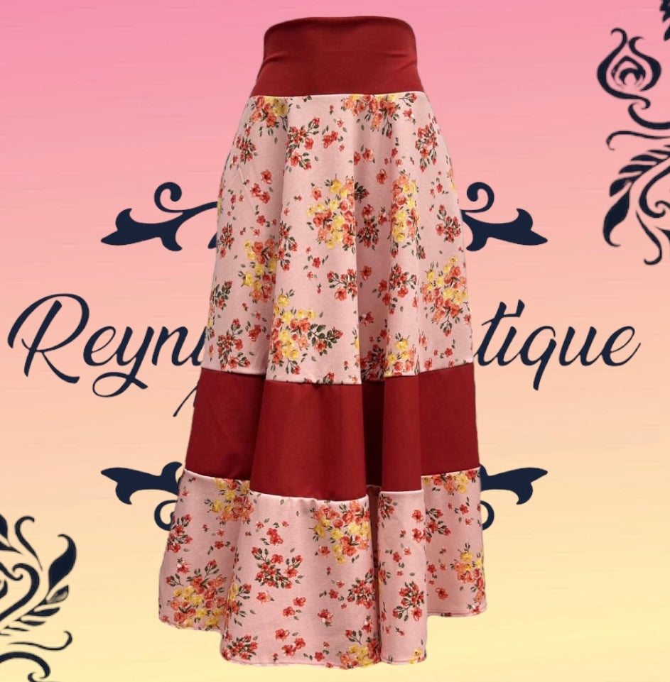 This skirt is soft and features a floral design. It is 3/4 length and includes pockets. Ideal for a fresh and feminine look.