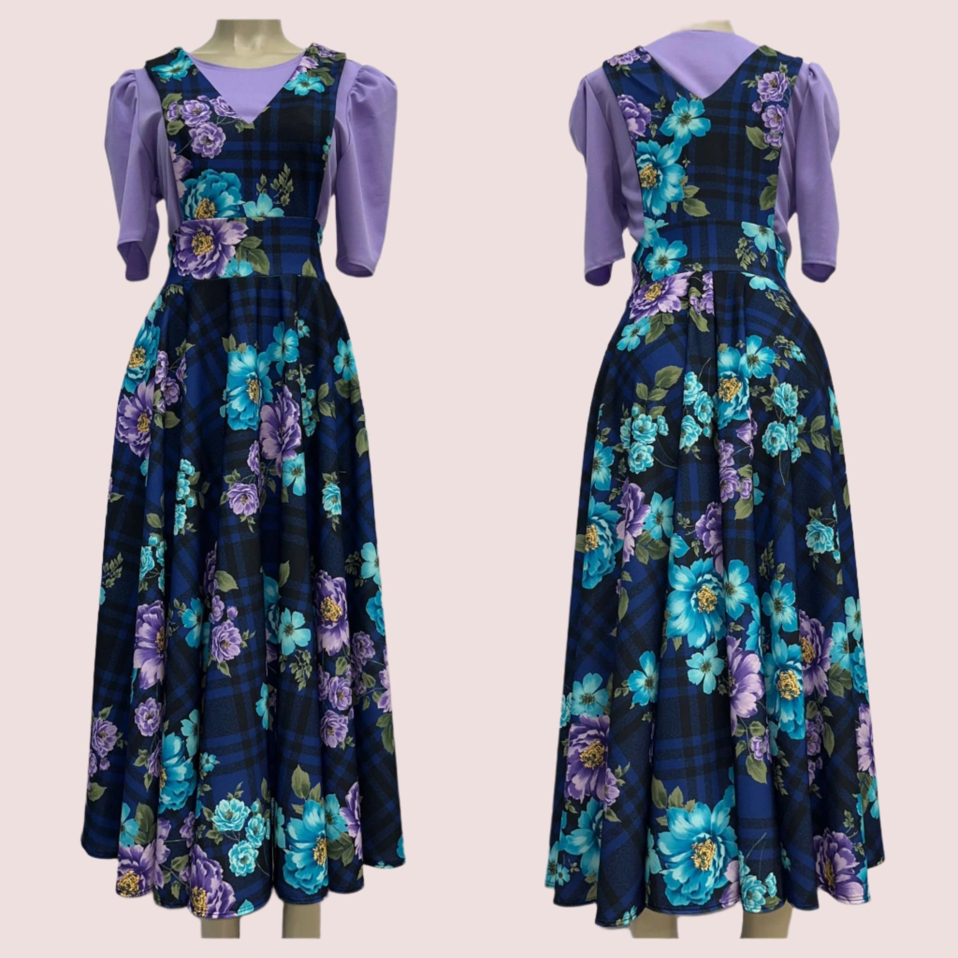 Black/Blue checked overall with flowers