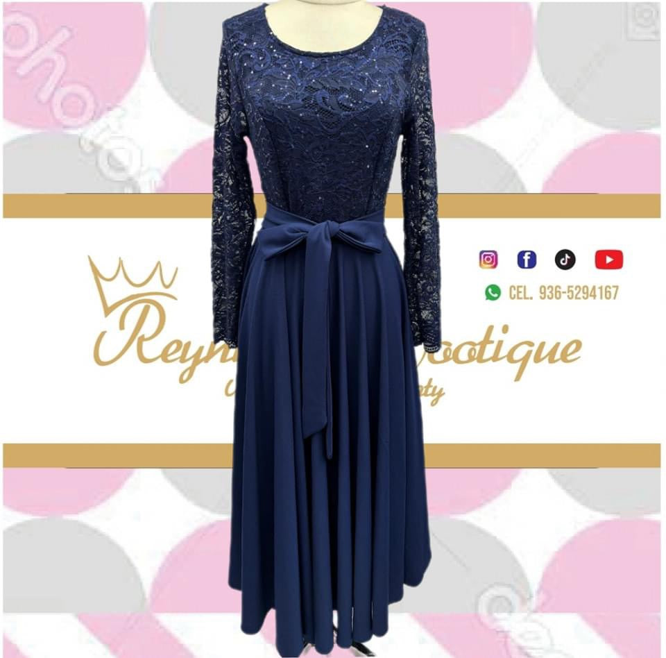 long dark blue party dress