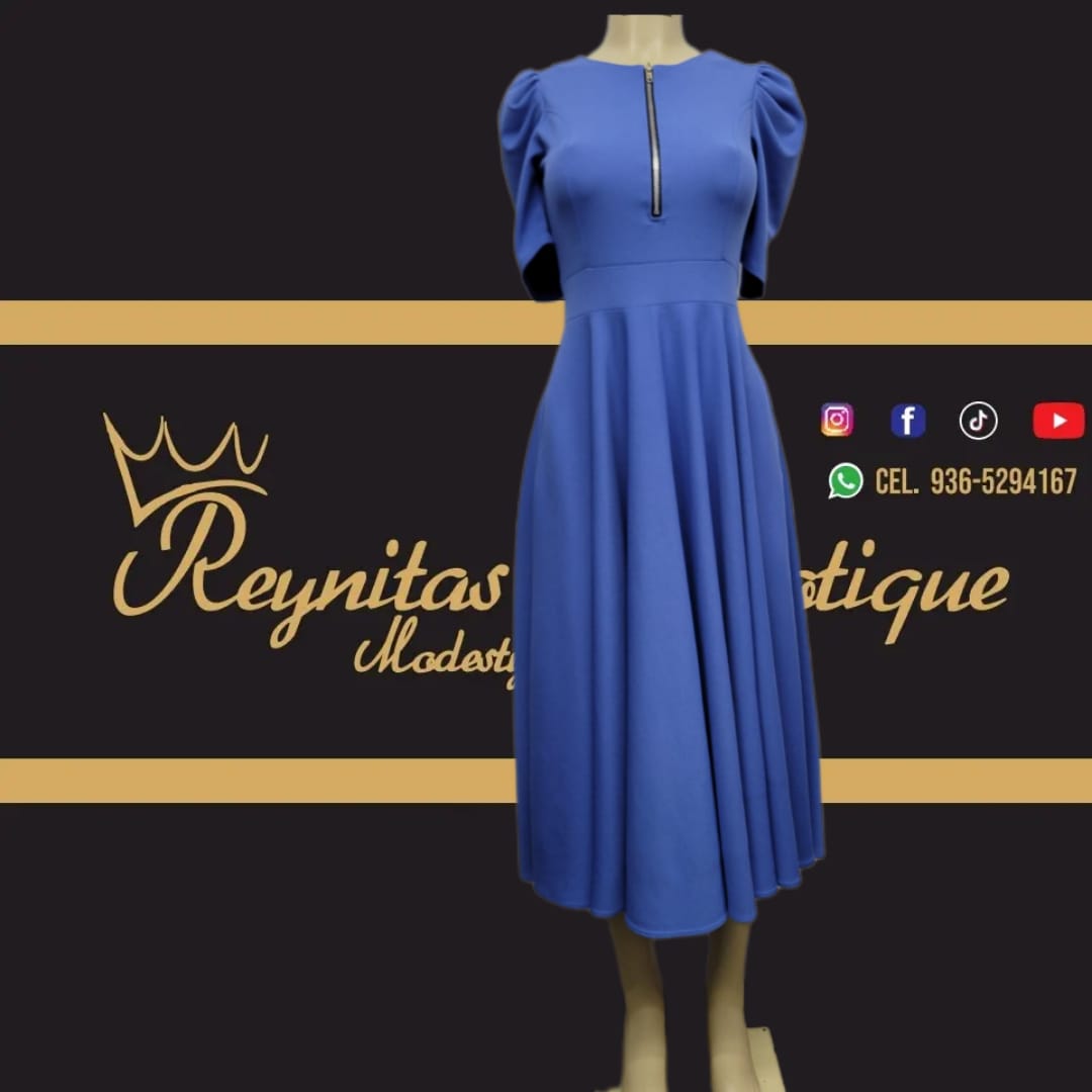 * 👗 **Diseño:** Vestido de largo tres cuartos con silueta elegante y femenina.