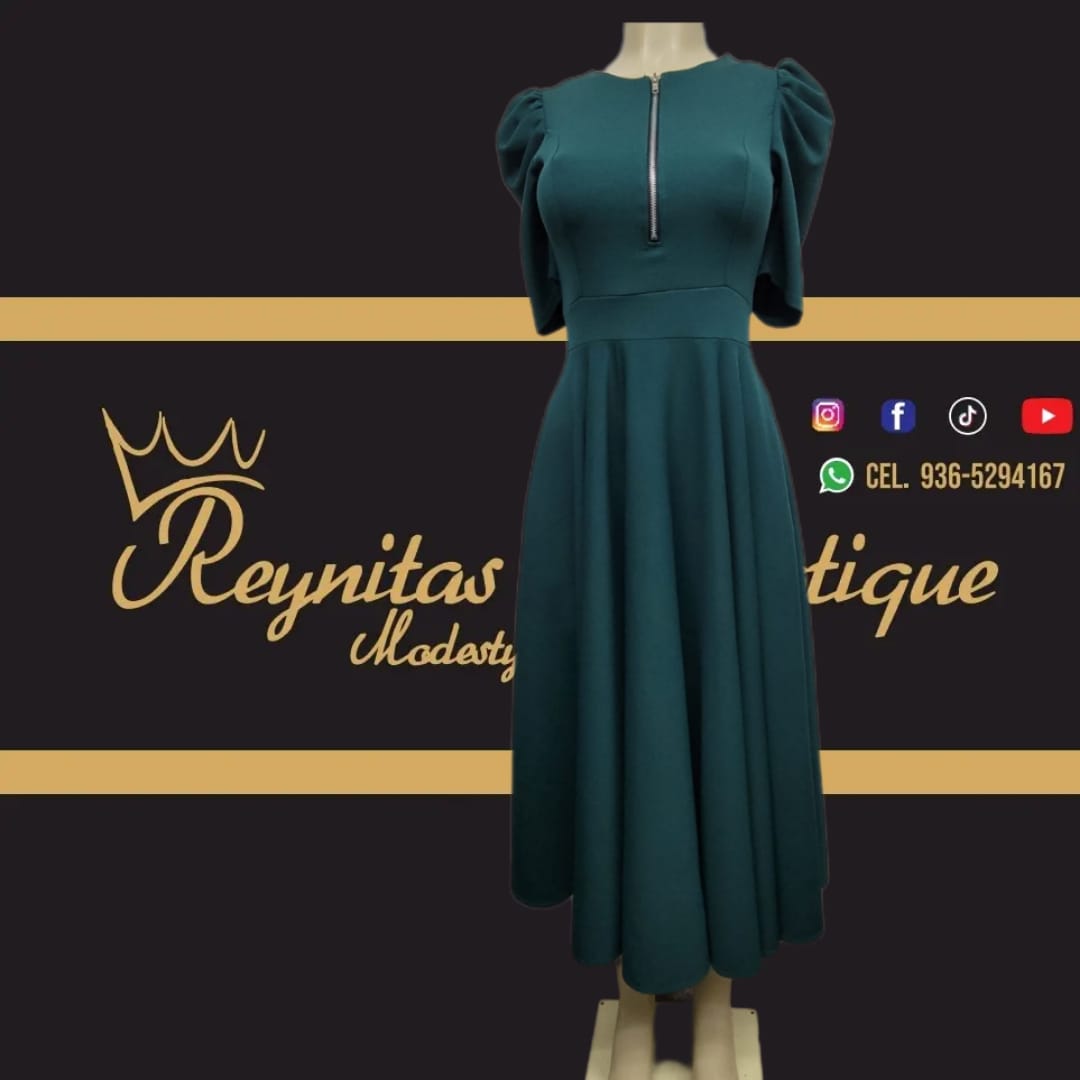 * 👗 **Diseño:** Vestido de largo tres cuartos con silueta elegante y femenina.