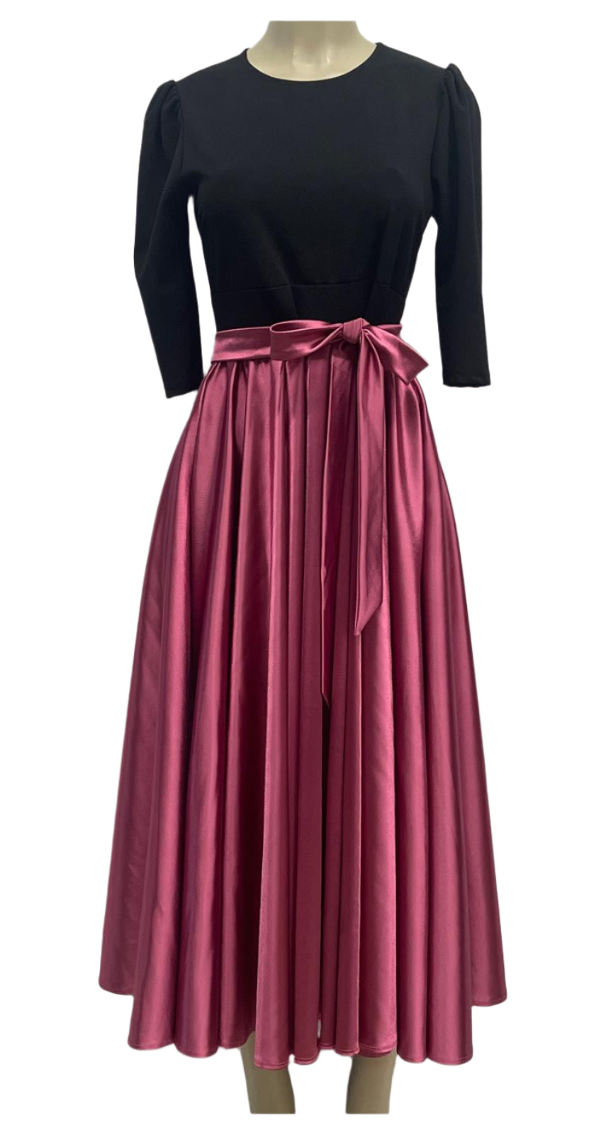 Satin fabric dress, baby-length skirt, and black techno crepe blouse