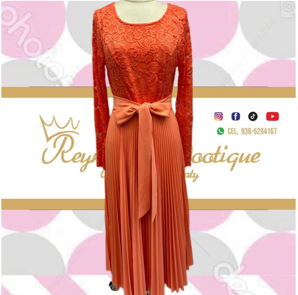 orange lace pleated dress
