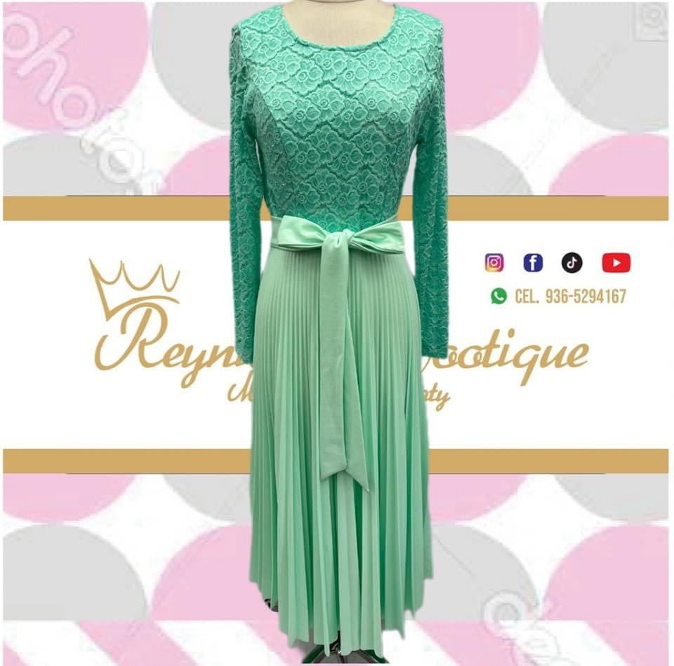 This pleated lace dress is a sophisticated choice for any occasion. It features a figure-hugging ribbon detail, while its pleated design and long sleeves add elegance and comfort. Look amazing in this dress!