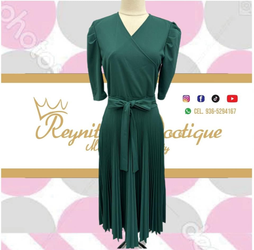 This elegant pleated wrap dress is perfect for any occasion. It features pockets for convenience and a ribbon that highlights your waist. Its elbow-length sleeve design will keep you cool and comfortable all day long. Complete your look with this full disc.