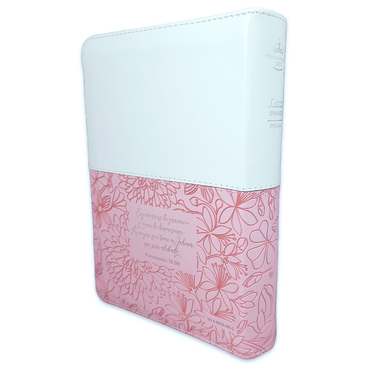 Biblia con Cierre Compacta 11 puntos RV1960 imit piel blanca y rosa floral con índice - Proverbios 31:30