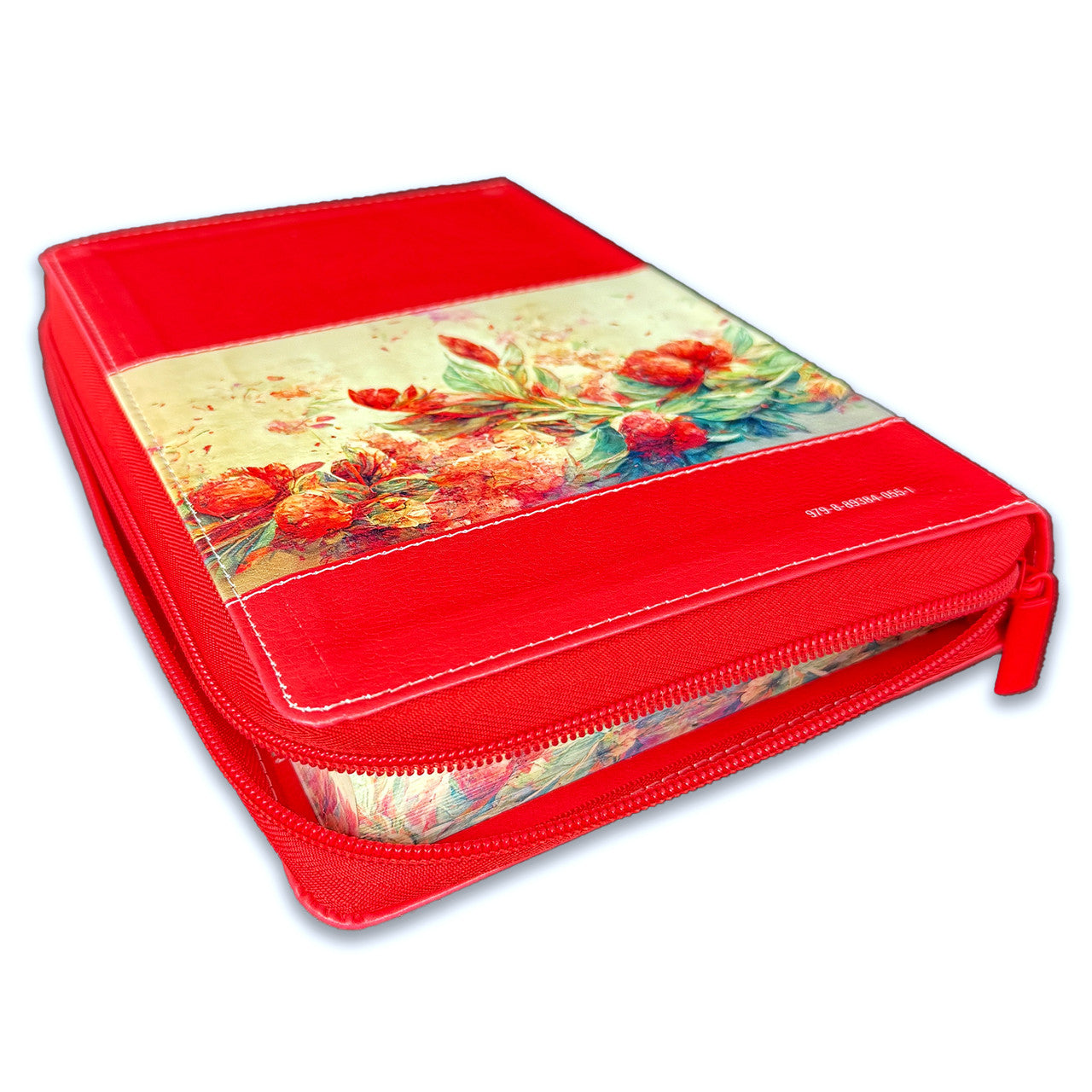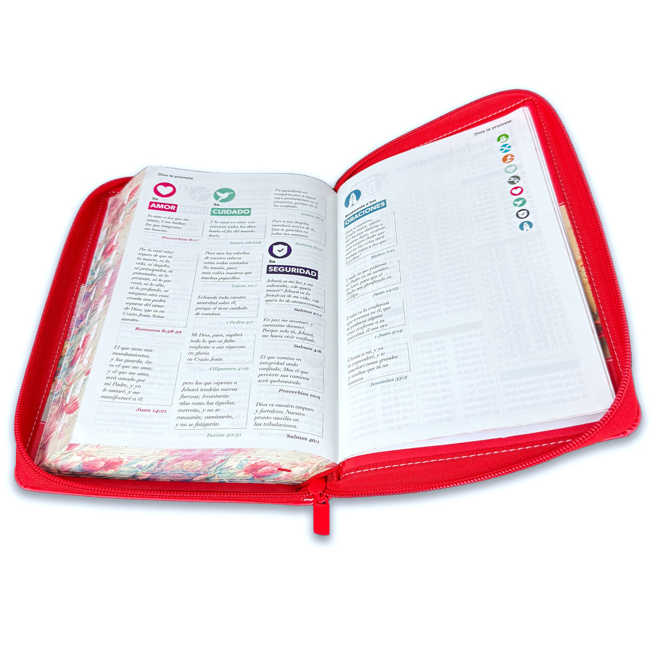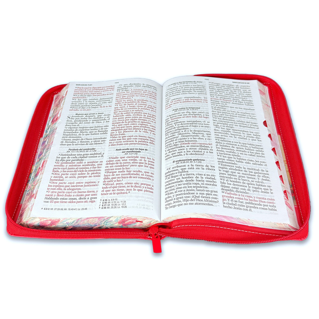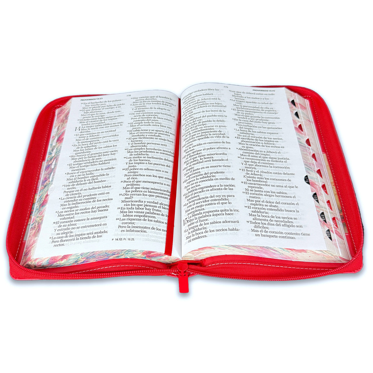 Biblia con Cierre Letra Grande 12 puntos para Mujer RV1960 imit. piel coral floral con índice y canto floral