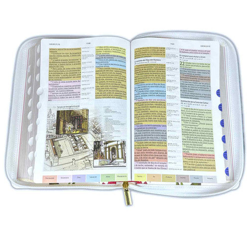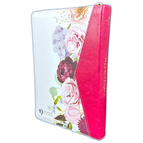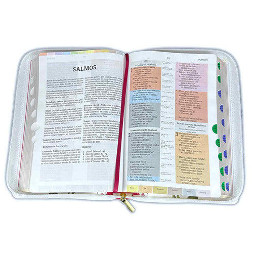 Biblia de Estudio Arco Iris para Mujer con Cierre RV1960 imit piel fucsia y blanco floral con índice