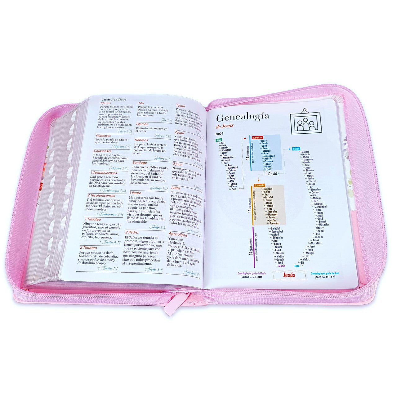 Biblia Mujer Virtuosa con Cierre Compacta 11 puntos RV1960 imit piel blanca floral con índice