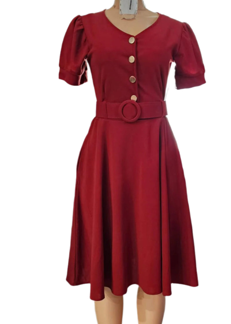 🔹 **Cinturón:** Forrado en la misma tela, con hebilla redonda que define la cintura