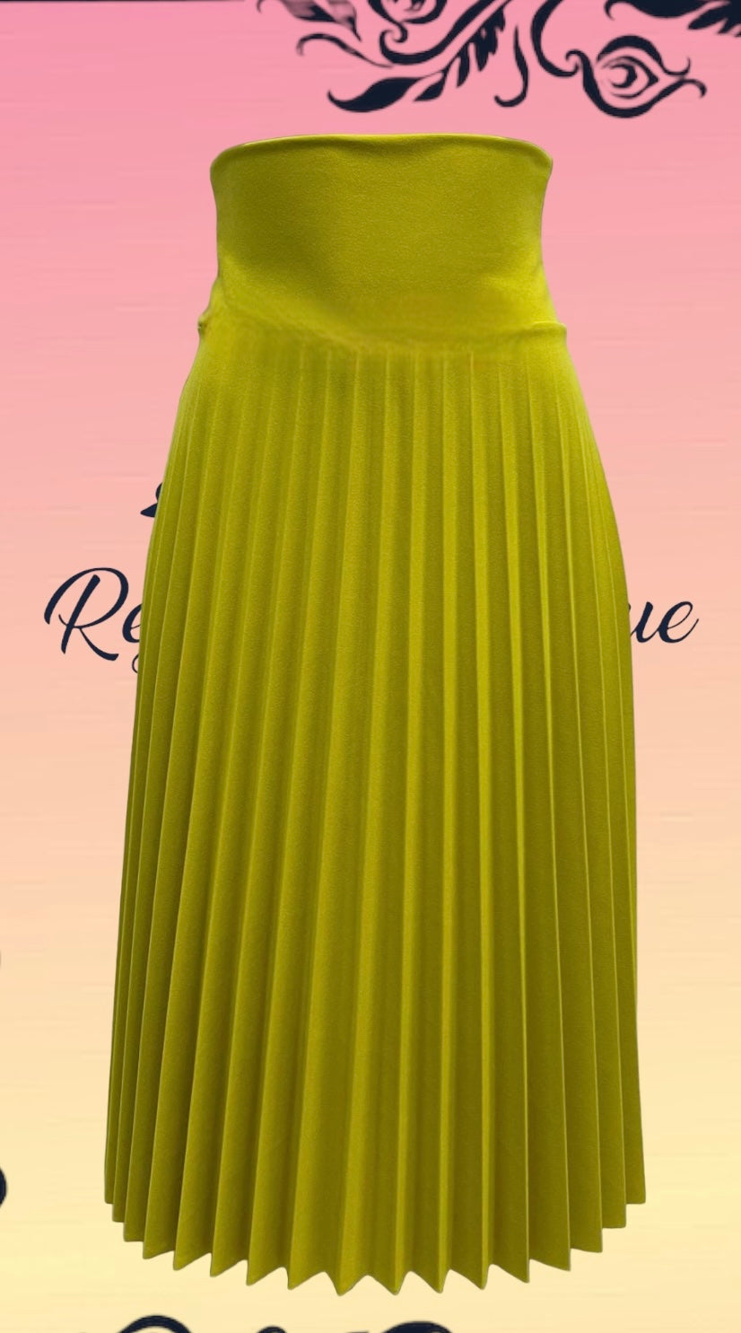 Falda amarillo olivo Plizada 3/4 medio disco N/B