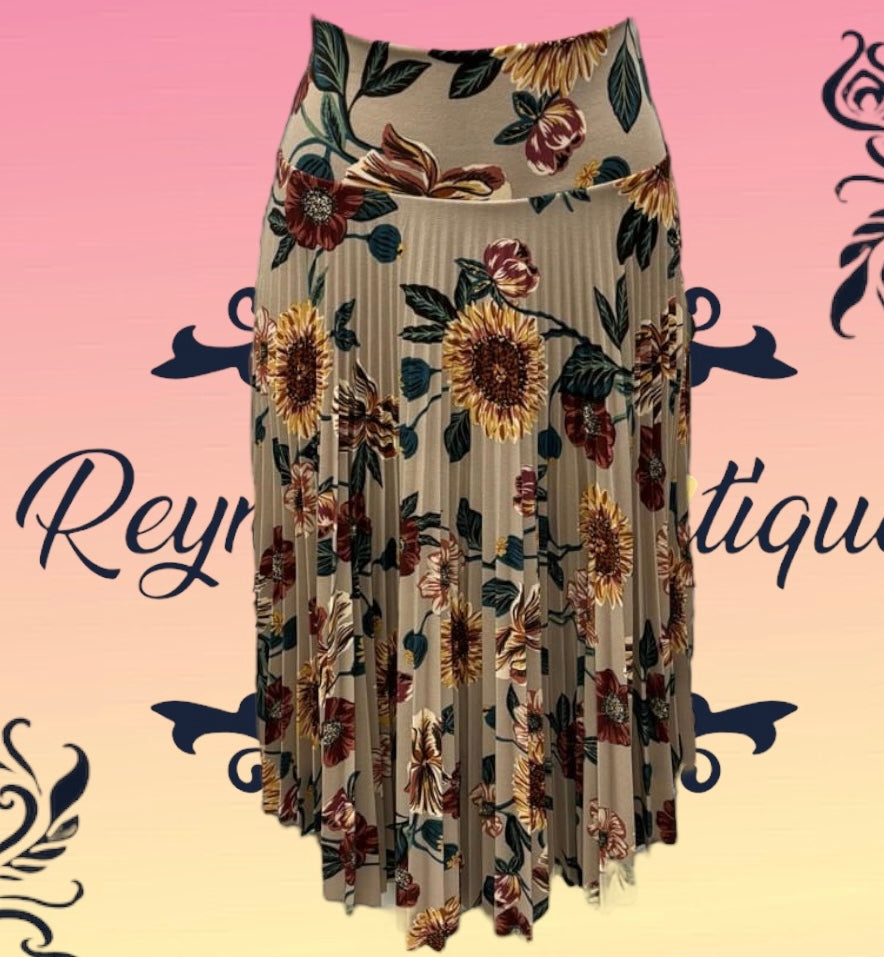 Falda cafe /girasol Plizada 3/4 medio disco N/B