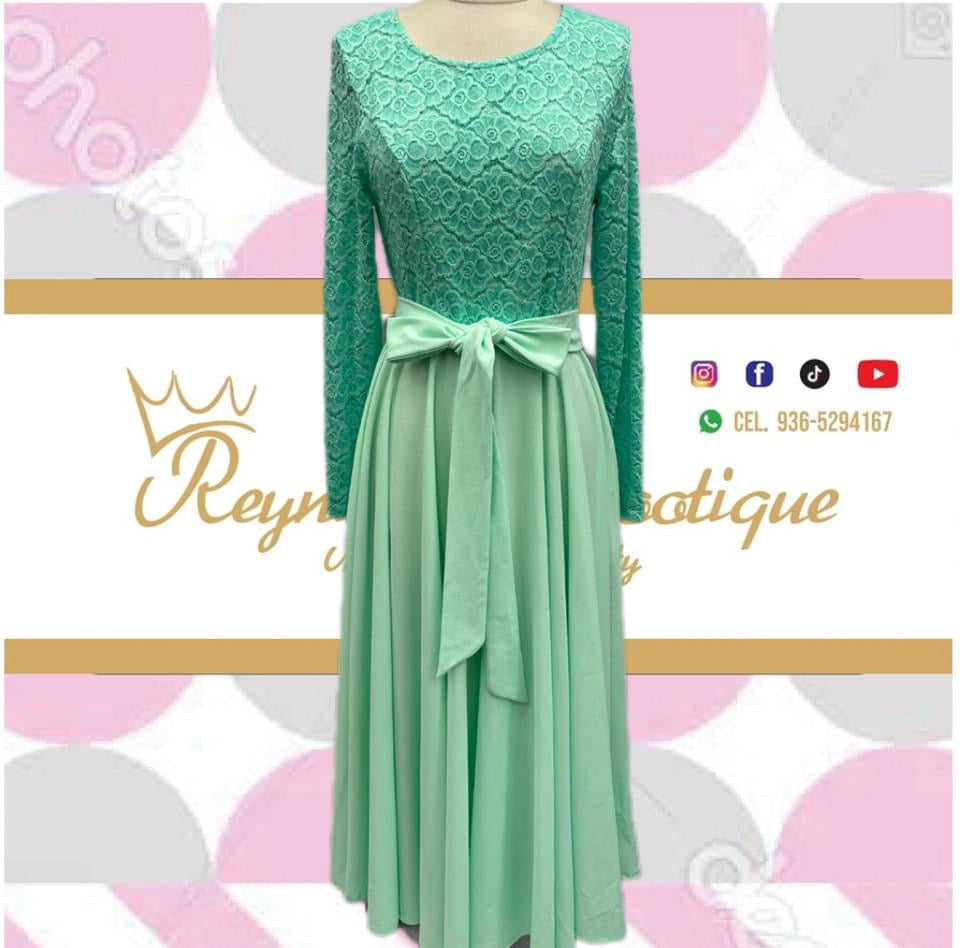 Este vestido liso de blonda es una opción sofisticada para cualquier ocasión. Presenta el detalle de un listón que realza la figura, mientras que su diseño plisado y manga larga aportan elegancia y comodidad. ¡Luce espectacular con este vestido!