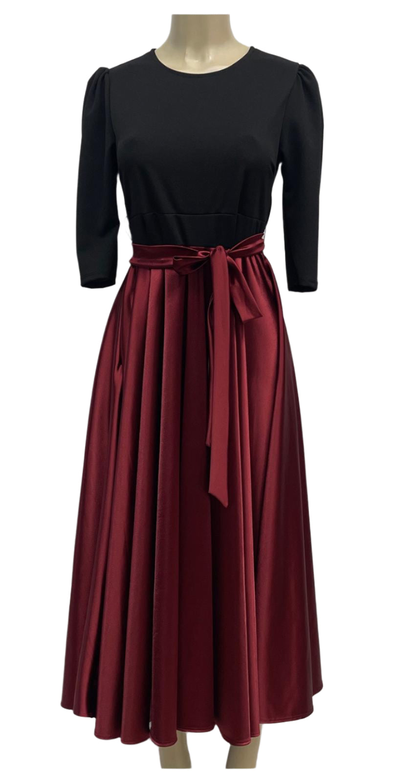 vestido tela satin falda Burgundy y blusa negro en tecno crepe