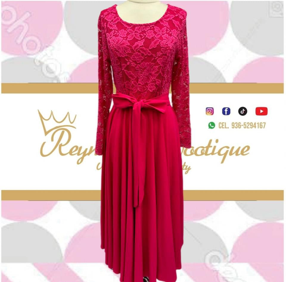 Este vestido liso de blonda es una opción sofisticada para cualquier ocasión. Presenta el detalle de un listón que realza la figura, mientras que su diseño plisado y manga larga aportan elegancia y comodidad. ¡Luce espectacular con este vestido!