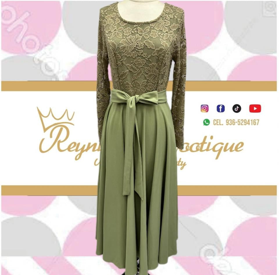 Este vestido liso de blonda es una opción sofisticada para cualquier ocasión. Presenta el detalle de un listón que realza la figura, mientras que su diseño plisado y manga larga aportan elegancia y comodidad. ¡Luce espectacular con este vestido!
