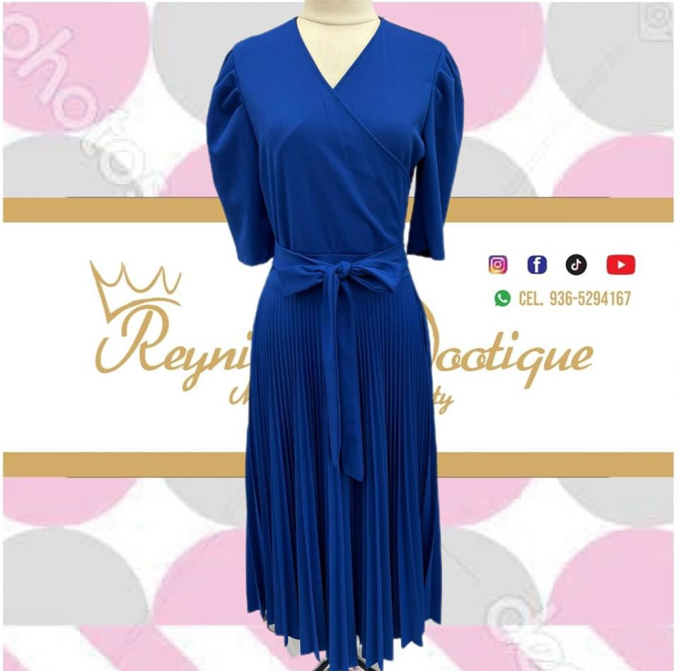 Este elegante vestido traslapado plisado es perfecto para cualquier ocasión. Cuenta con bolsillos para mayor comodidad y un listón que resalta tu cintura. Su diseño de manga hasta el codo te mantendrá fresca y cómoda todo el día. Completa tu look con este disco completo.